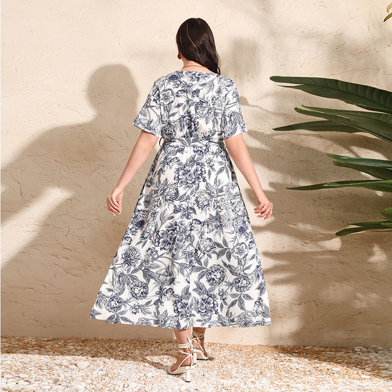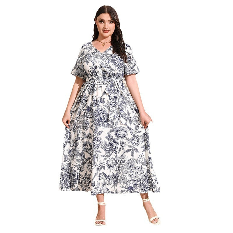 【Nowy styl 2025】Elegancka sukienka w dużym rozmiarze z dekoltem w serek